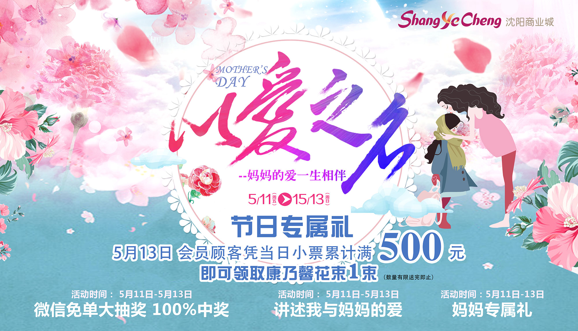 5月13日,會員顧客憑當日小票累計滿500元,即可領取康乃馨花束1束(數(shù)量有限送完為止)